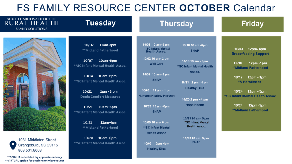 We serve families in Allendale, Bamberg, Barnwell, Calhoun, Hampton and Orangeburg counties.